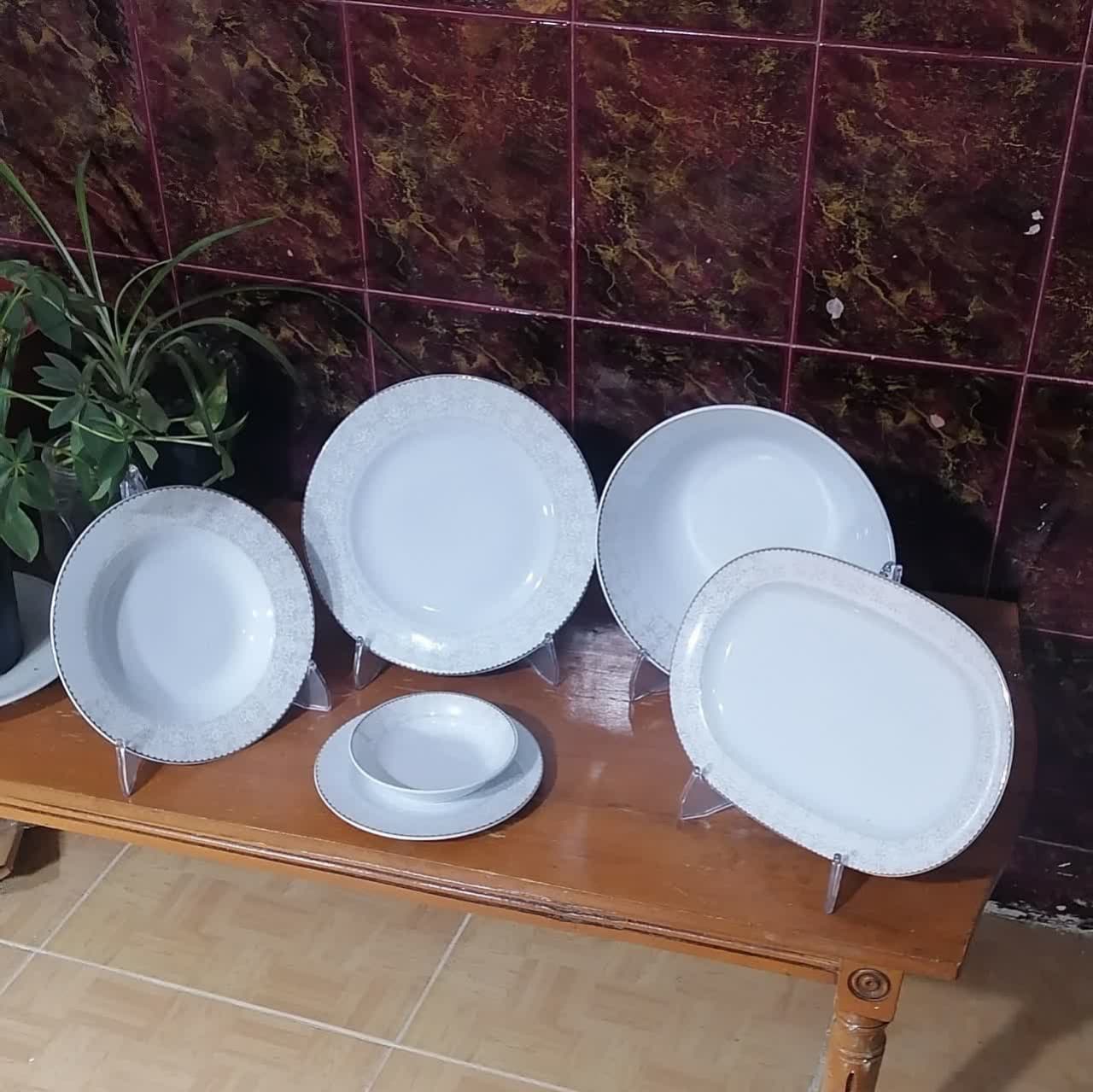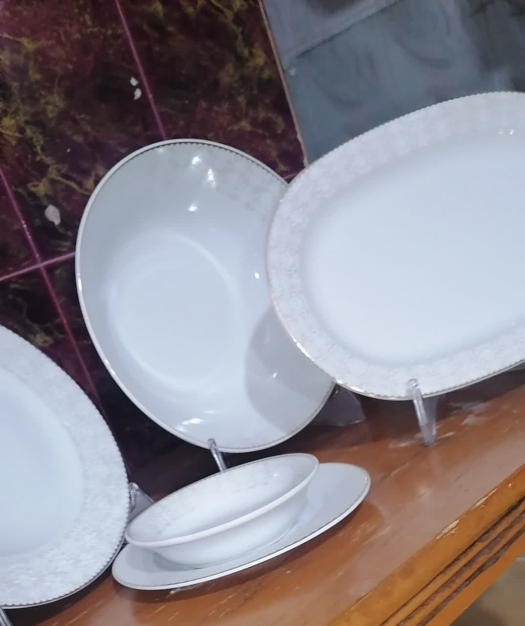 این سرویس 26 پارچه شامل 6 عدد برنج خوری 26در 26 و 6 عدد خورشت خوری 23 در 23 و6 عدد پیش دستی 19 در 19 و 6 عدد پیاله 14در 14 و یک کاسه 25 در 25 و یک عدد دیس سایز بزرگ به سایز 33در 18است